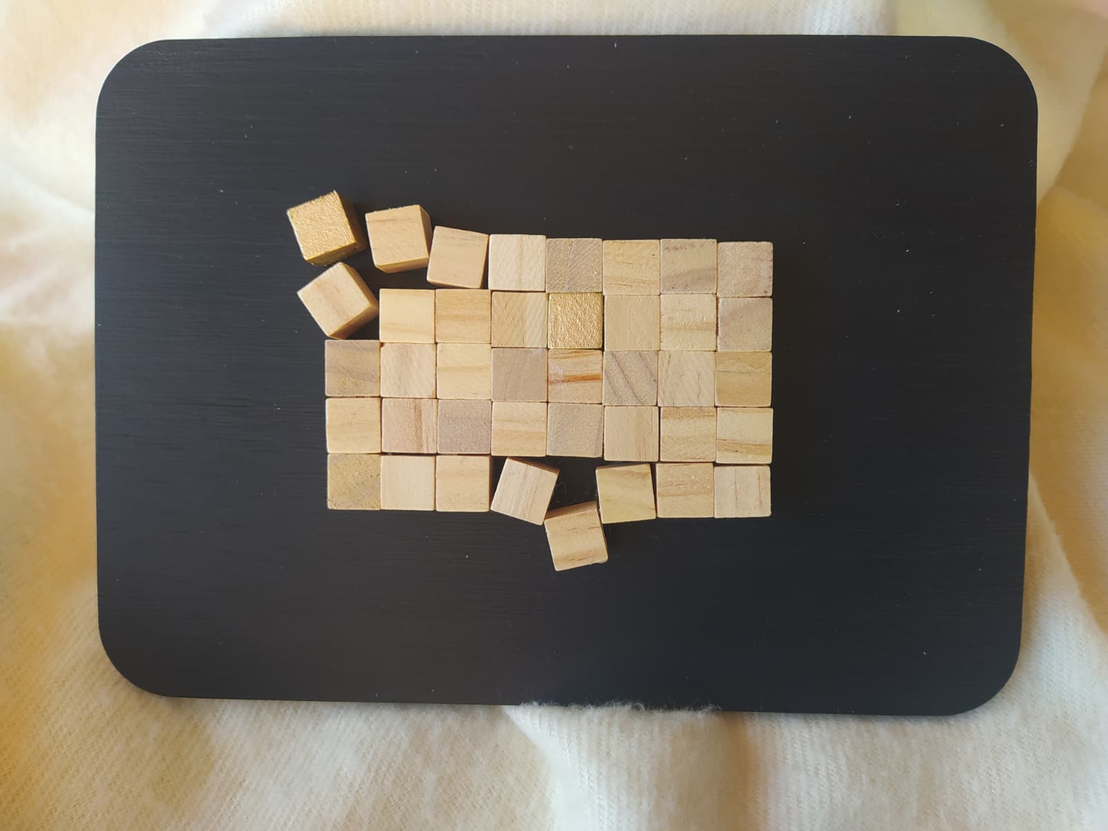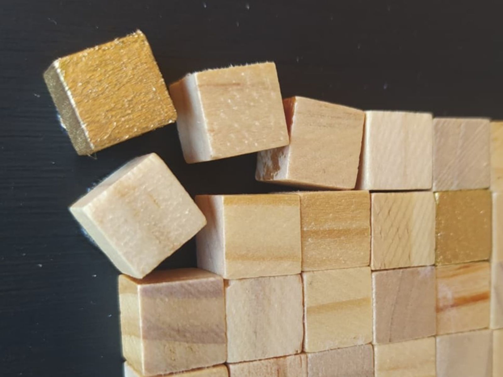 Cuadro formado por una composición hecha con pequeños cubos de madera,